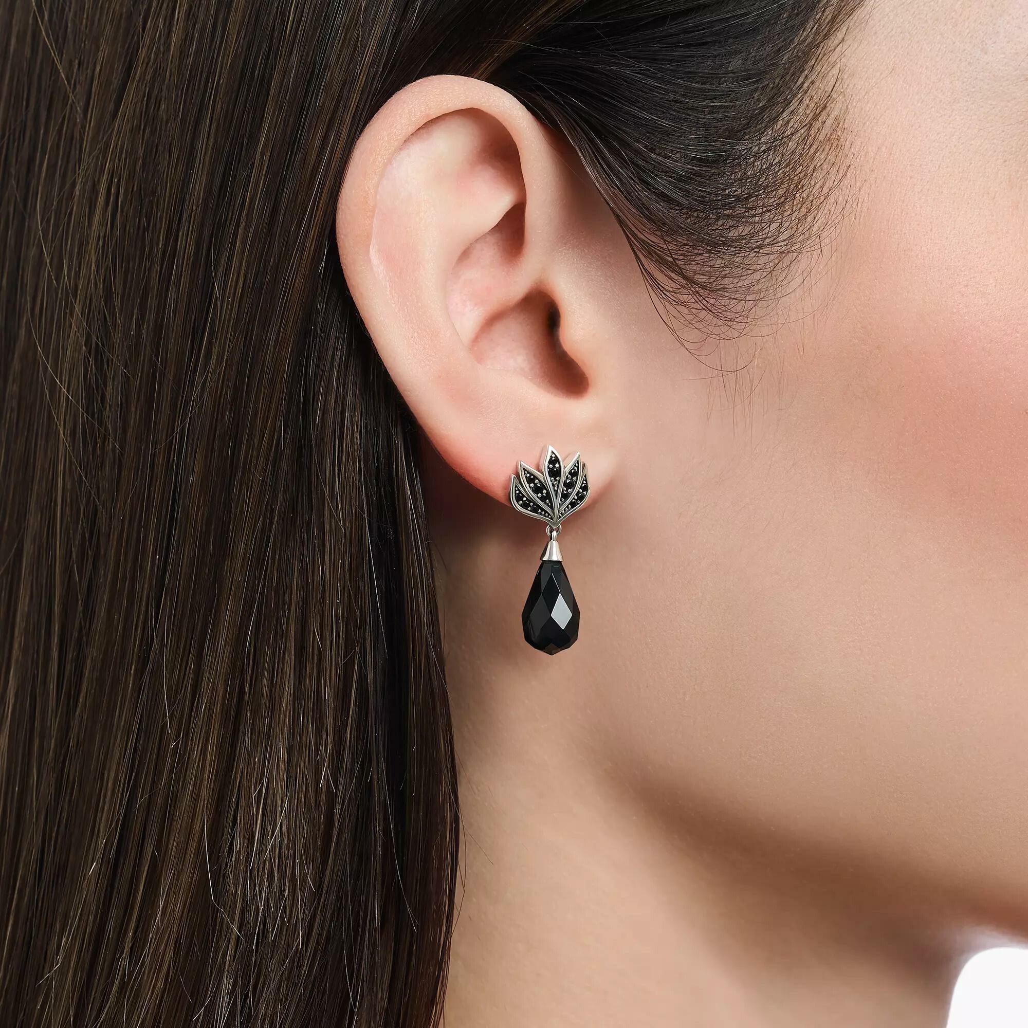 Boucles d'oreilles Thomas Sabo Rebel At heart en argent, obsidienne et oxyde de zirconium